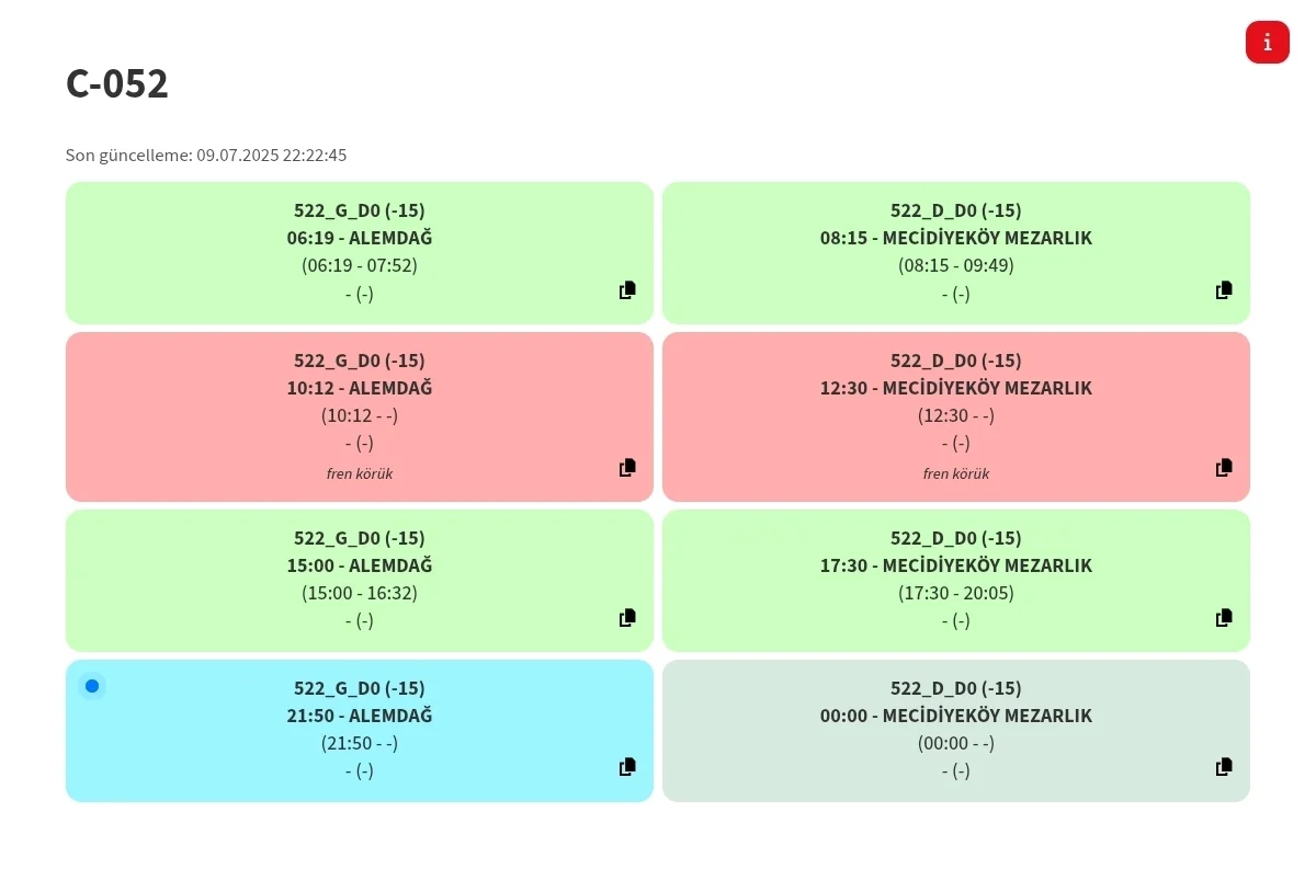 Hazır konusu açılmışken bir bilgi daha vereyim. Örneğin güzergah kodunda 522_G_D2204 ifadesi var. Bu 2204 numaralı depar güzergahta çalıştığını bildirir.Sitede Nişantepe - Mezarlık deparı gözüküyor 522-1