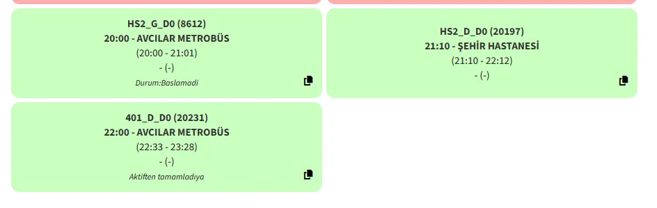 Son yılların en nadir olayıTek seferlik vermişler. HS2 şehir hastanesinden kalkıp Avcılara gelince 1 tane Avcılar kalkışlı 401 yapmış ona da yetişememiş 33 dk geç kalkmış. Yetişememesi de normal HS2'ye 50 dk yetmez. Bir de 50 dk da bitirip 401'in kalkış yerine gelmesi lazım ve şöförün de dinlenmesi lazım. Saçmalamışlar yine