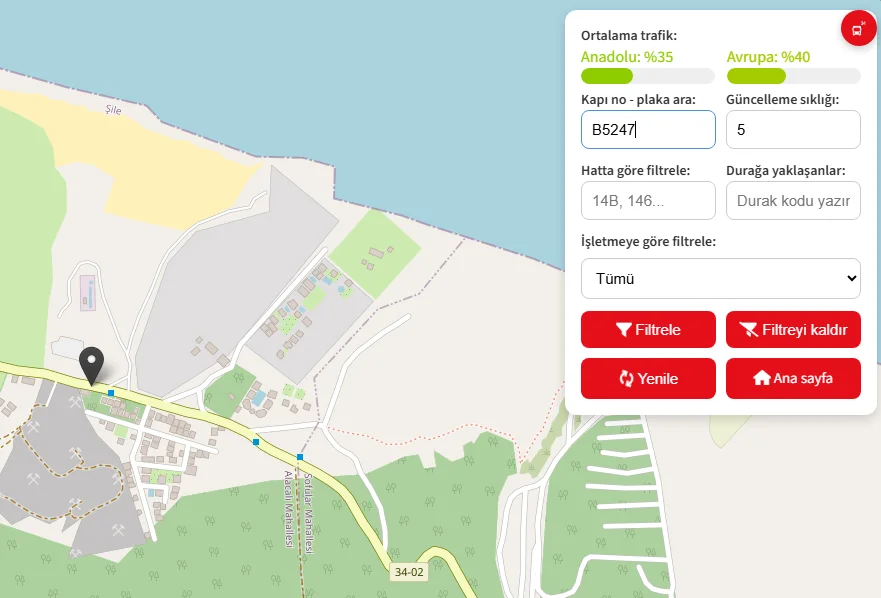 O2009 ve O2203 -> Kağıthane'den Şile'ye geçti.