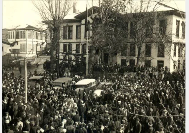 1930… Sağ tarafta İnegöl eski jandarma karakolu,karşıda İnegöl eski hükümet binası…Fotoğraf tahminen günümüzde Ahmet Akyol caddesi Hacı Aziz İnegöl köftecisi olan mekanın ön tarafından çekilmiş…Eski jandarma karakolunun karşısındaki bina Hafız Vahit’in kahvesi ve oteli. Bursa’ya giden minibüsler oradan kalkardı.