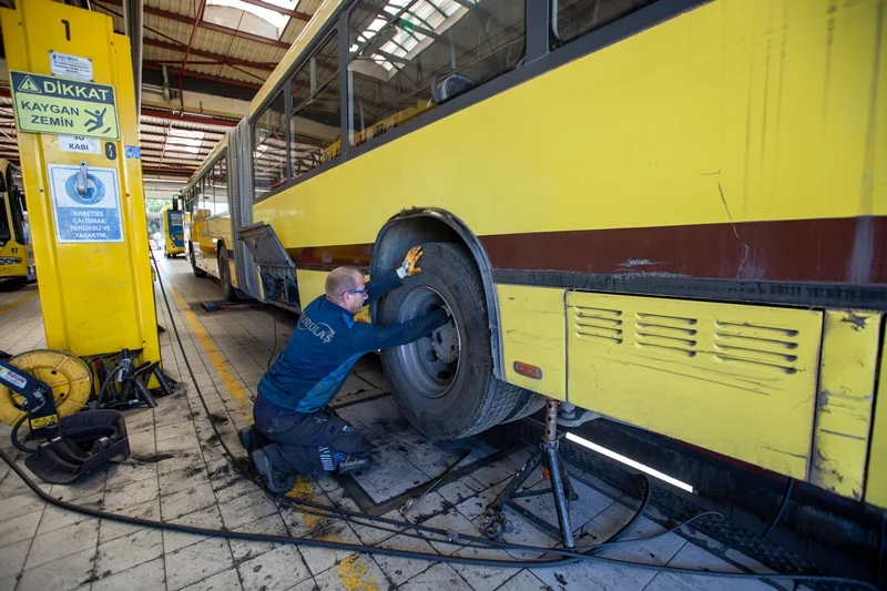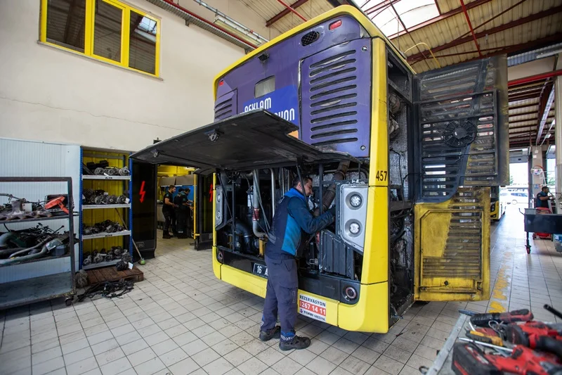 Otobüs Bakım Müdürü Enes Başol ise 546 araçlık filonun yaklaşık yüzde 25’ine günlük bakım ve onarım hizmeti sağlandığını ifade etti. Başol, “Atölyelerimizde motor, şanzıman, diferansiyel gibi ana bileşenlerin yanı sıra fren sistemleri, elektrik-elektronik sistemler ve hidrolik-pnömatik sistemlerin onarımlarını öz kaynaklarımızla gerçekleştiriyoruz” diye konuştu.