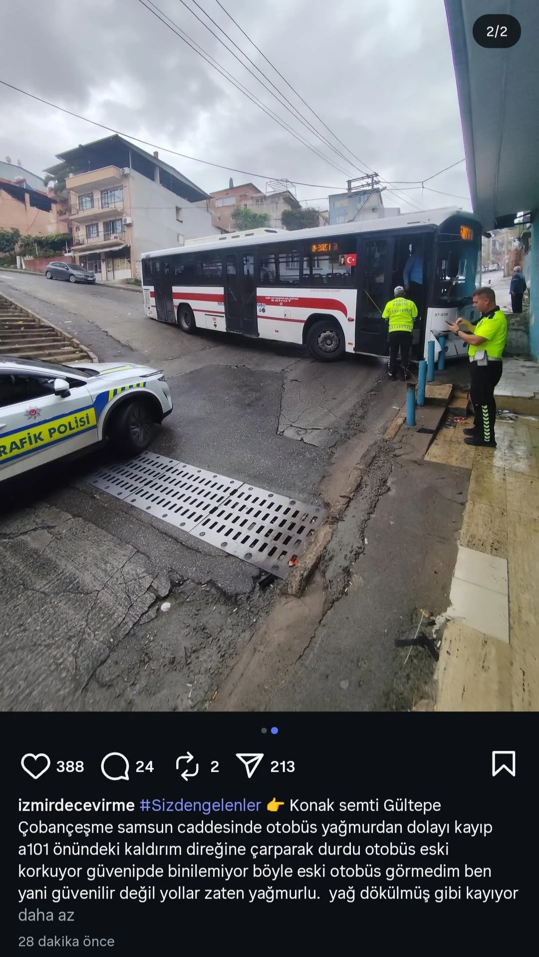 Bakalım hangi hat kurban olucak yeni araç acilen lazım belde yerine LE araç alınabilirYine bir belde kaza yapmış. 2 yıl önce yağmurlu bir günde 502 ile bende yapıyordum otobüs baya kaymıştı.