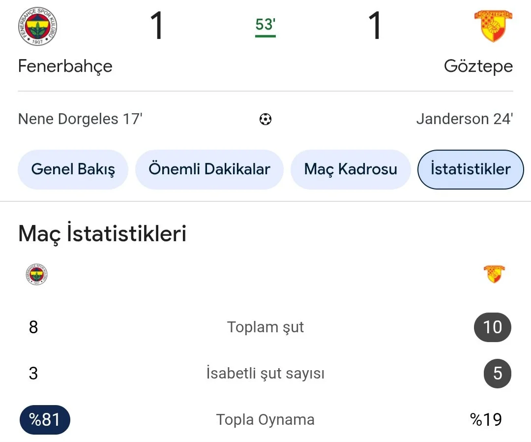 Göztepe defansındaki kilit isimler olan Heliton Ve Bokele yok diye bunlar rahatça geçer bence defansıDerken Nene 1.0 yaptı