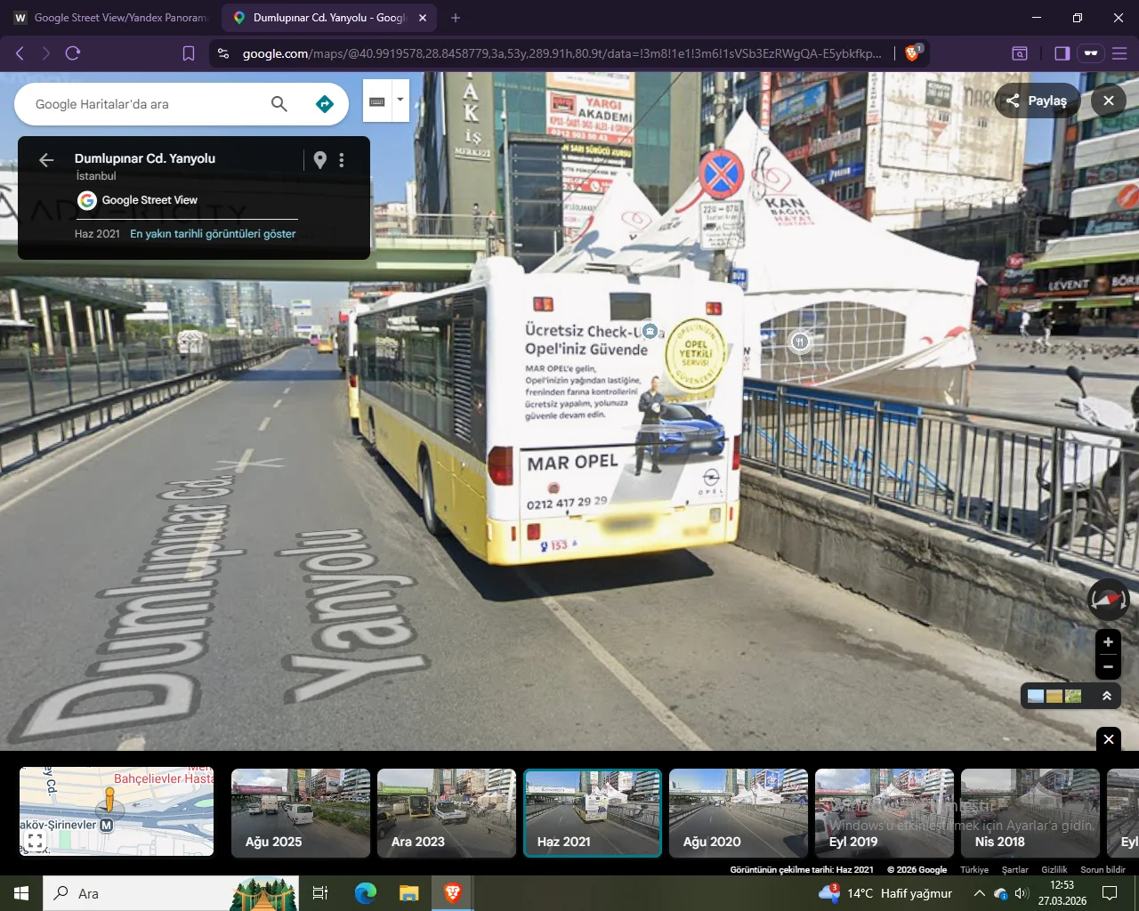 Yandex Panorama veya Google Street View'dan gezinip bakabilirsiniz Google'da 2014 Yandex'de 2011 yılına kadar gidilebiliyorBu konuda elimde pek içerik yok herkesin emeğine sağlık, bunu görünce hey gidi koca daf mjt neler çekti şu İstanbul senden demek istiyorum.