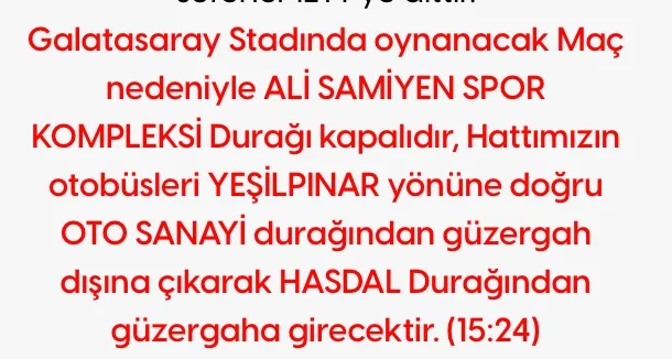 Hocam hala durak yönleri eskisi gibi değiştirmediler yeşilpınarda bazı duraklarda zincirlikuyu yönü yazıyor