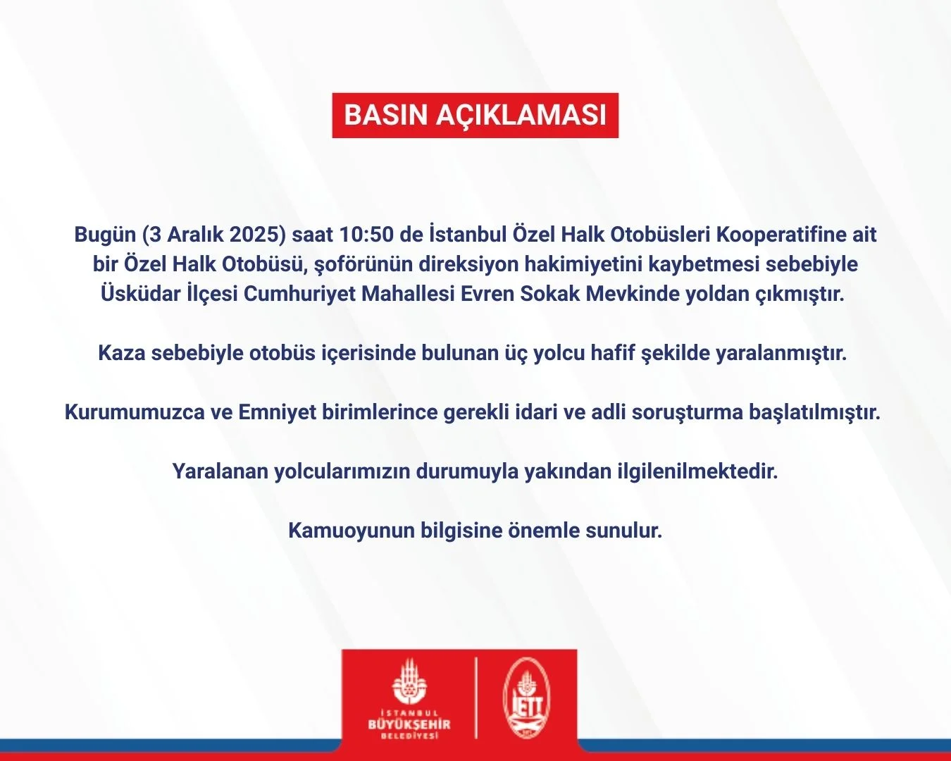 Ciddi bir kaza değil sanırım.
