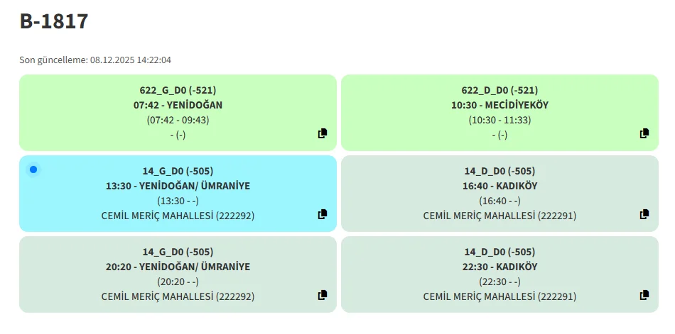 Yenidoğan kalkışlı hatlara arıza veren aracın yerine desteğe gidiyor olabilir. Sürekli servis kodu değişmişAraba yedekçi gibi takılıyor 132S iptal olup 14 e geçmiş