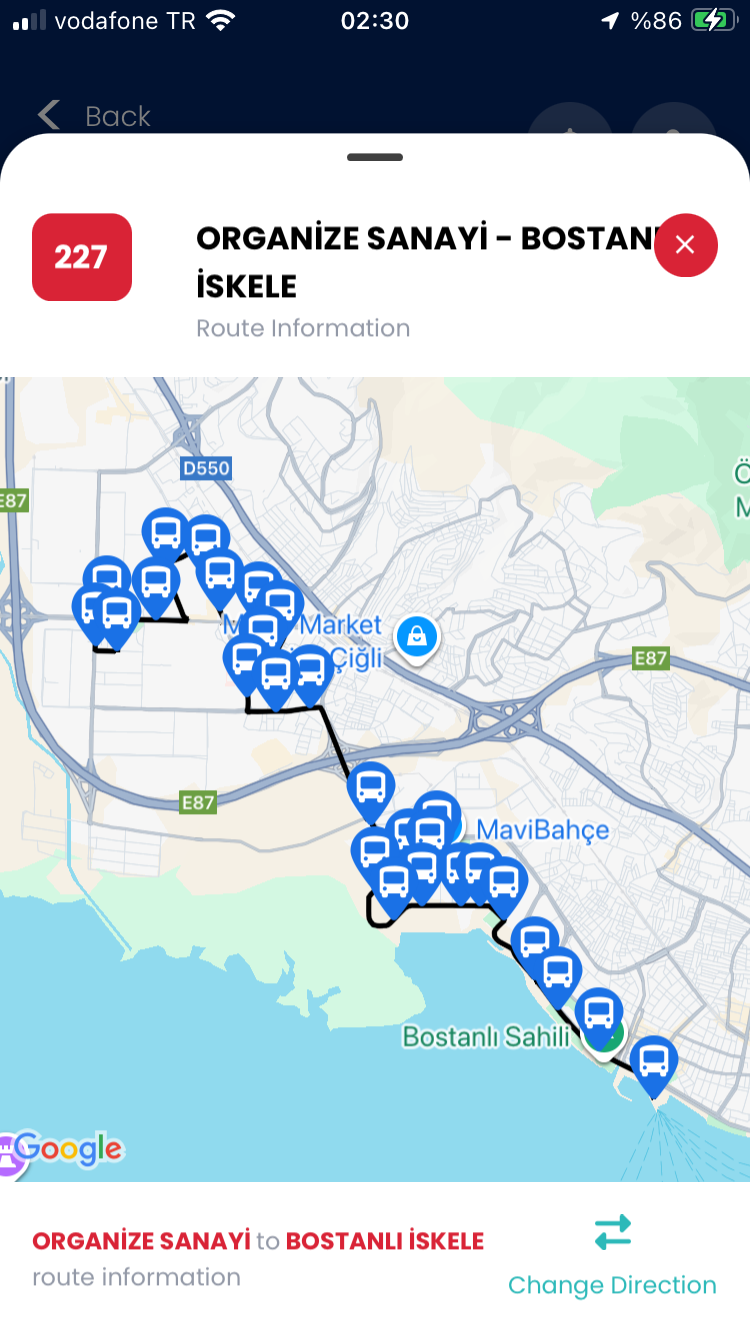 227 Organize Sanayi - Bostanlı İskele hattı yeniden eklenmiş enteresan bir güzergah ile..