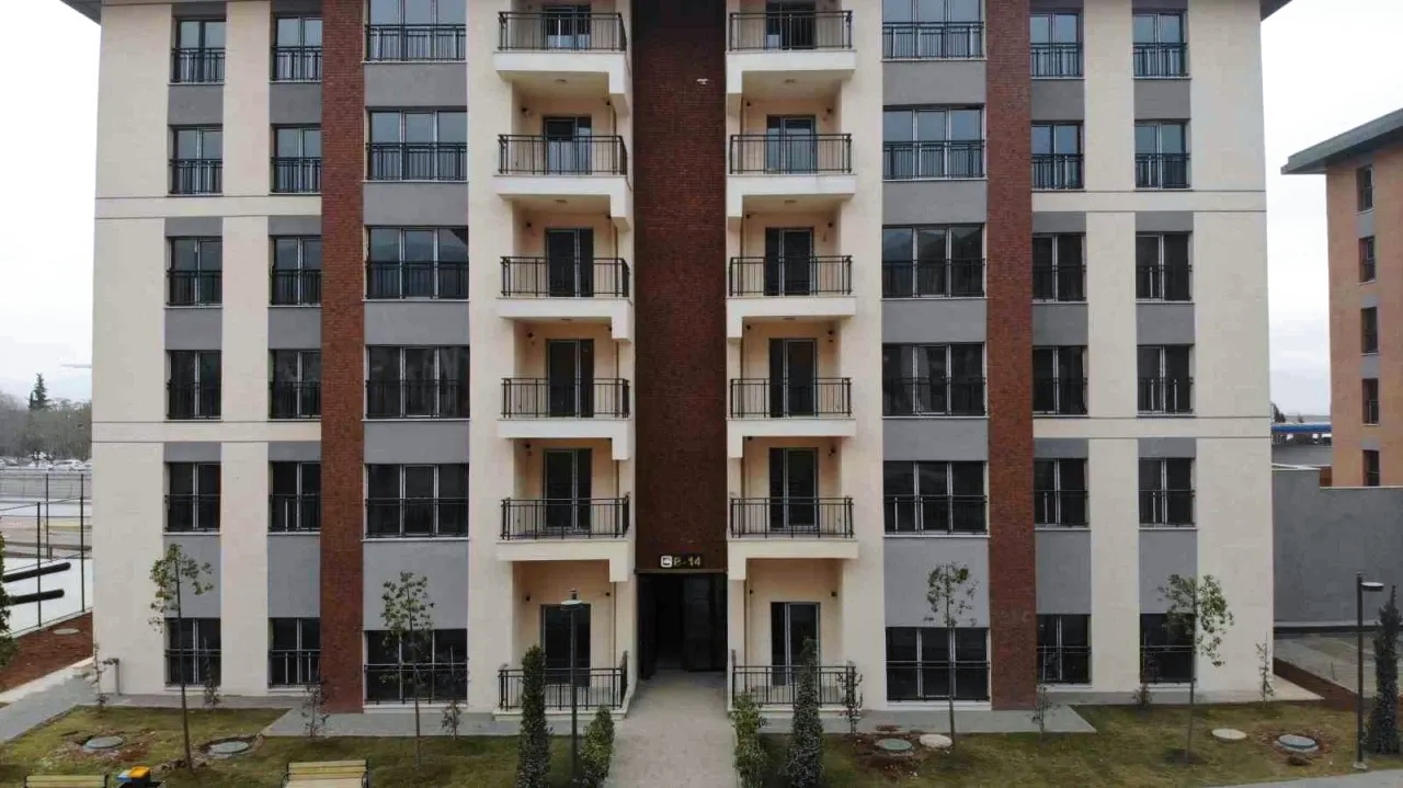 Kurtlar TOKİ (Çatısız konutlar depremden önce yapıldı), arkası çatılı Baykar Konutları, en geride gözüken Önsen TOKİ