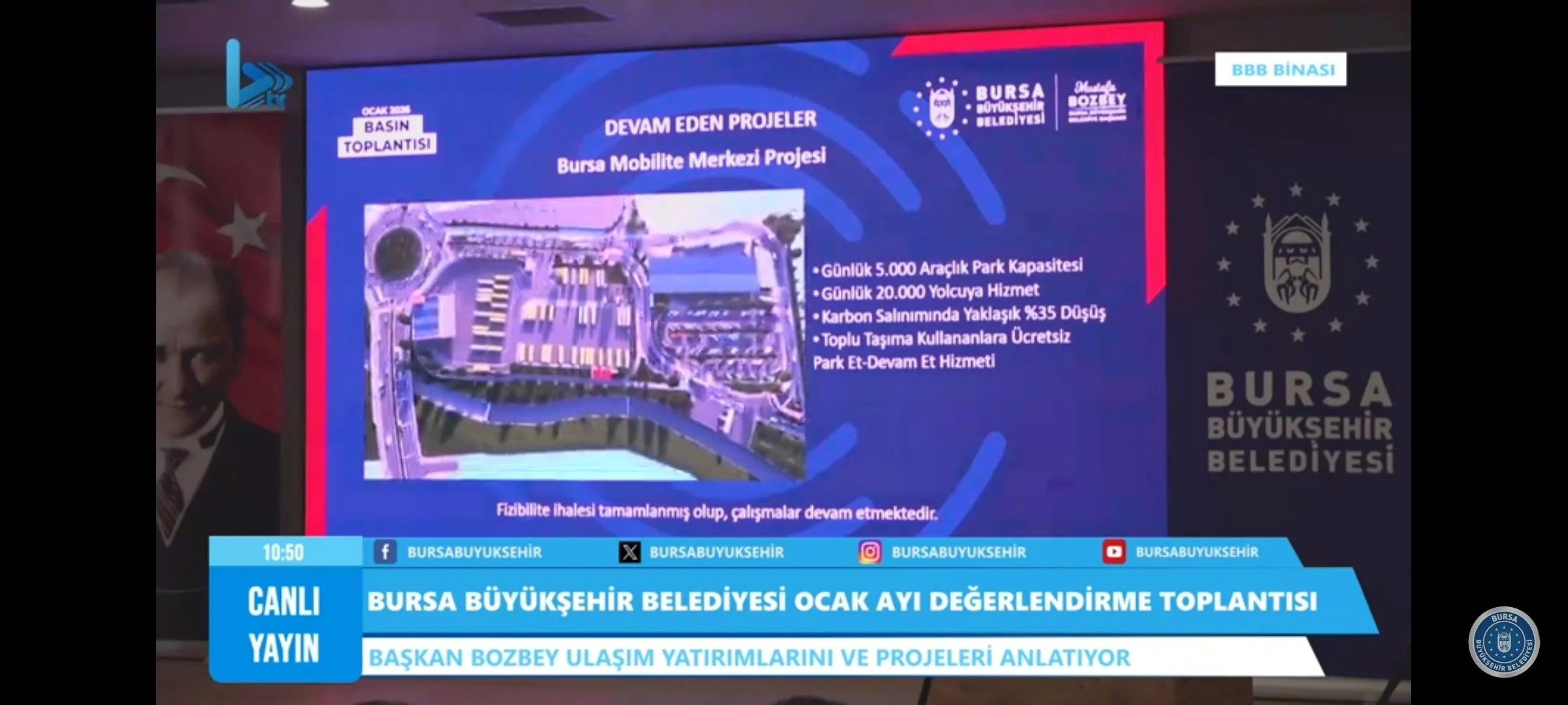 -Çalı-Demirtaş metro hattı: 3 etaba bölünmüş Çalı-Üçevler, Üçevler-Terminal ve Terminal-Demirtaş. İlk etapta Üçevler-Terminal kısmı için ihale yapılacakmış.14km ve 7 istasyon olacak dedi.